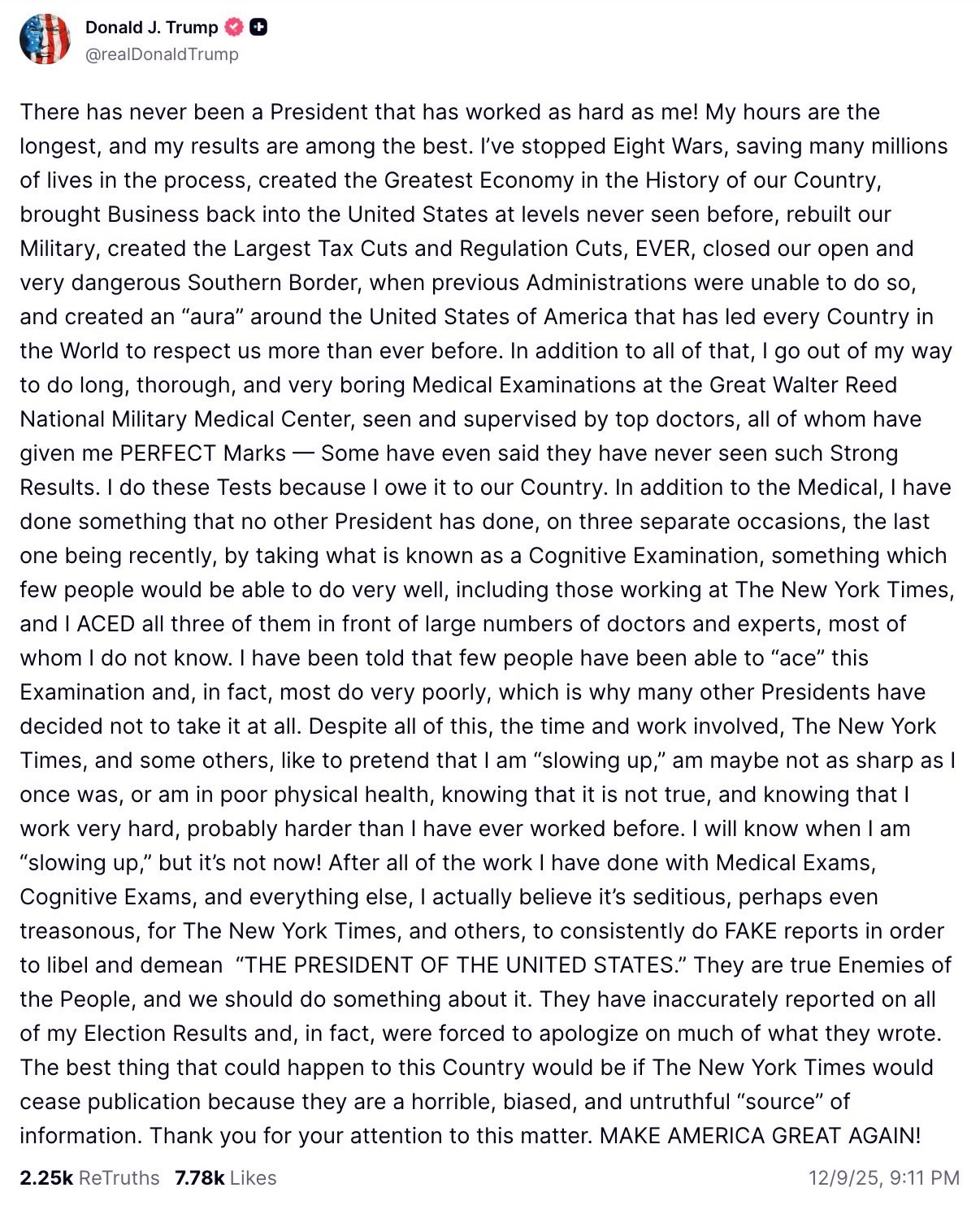 In Reply to: Questioning Trump’s health is now treasonous… posted by Fuzzy on December 10, 2025 at 08:29:25